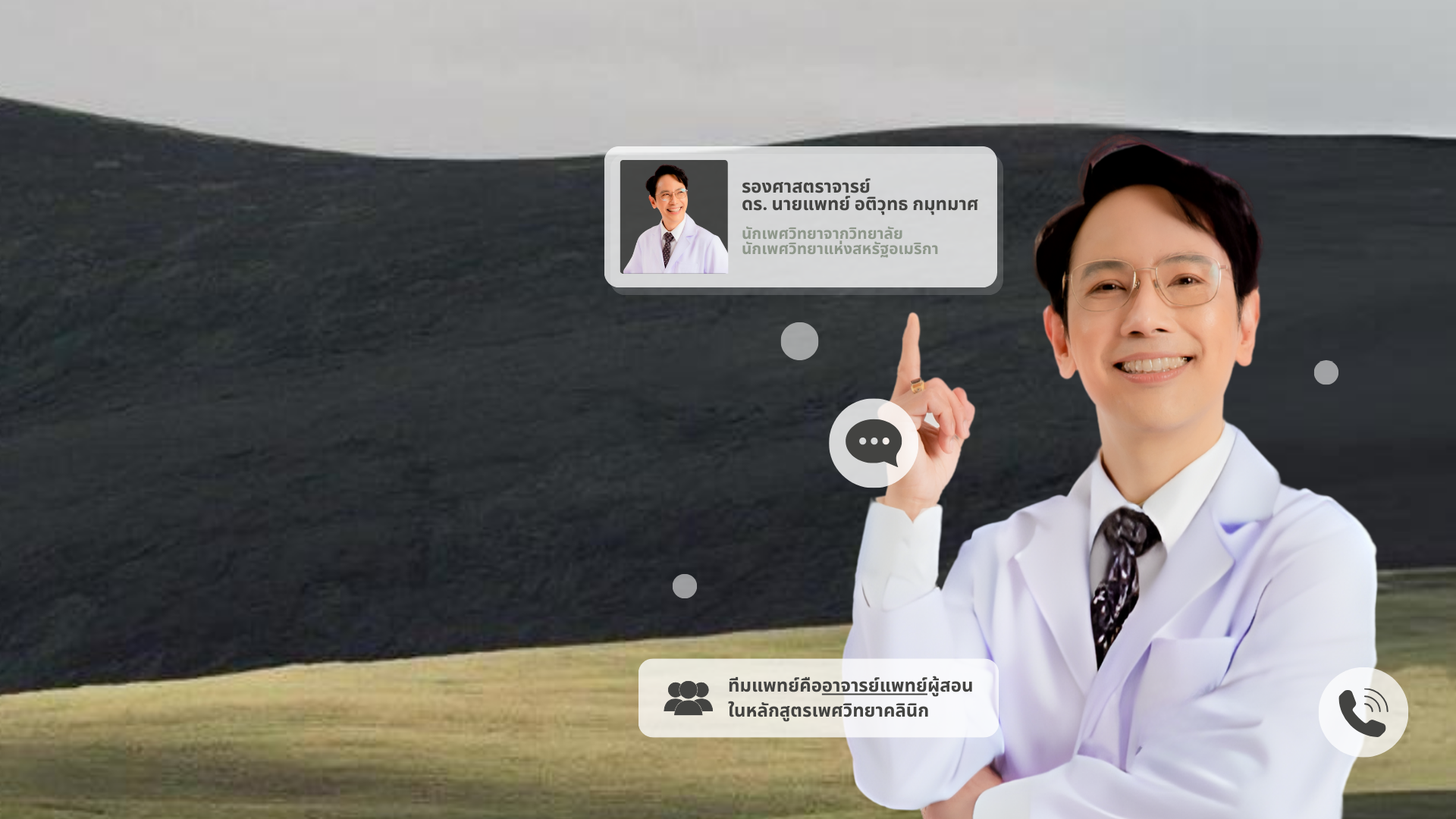 ปรึกษาสุขภาพเพศออนไลน์ โดยแพทย์ผู้เชี่ยวชาญด้านสุขภาพเพศระดับแนวหน้าของประเทศไทย เพื่อให้ผู้รับบริการมีความเชื่อมั่นสูงสุด จากแพทย์เวชศาสตร์ทางเพศ ที่ได้รับการรับรองแพทยสภา ประเทศไทย และ American Board of Sexology มาตรฐาน USA