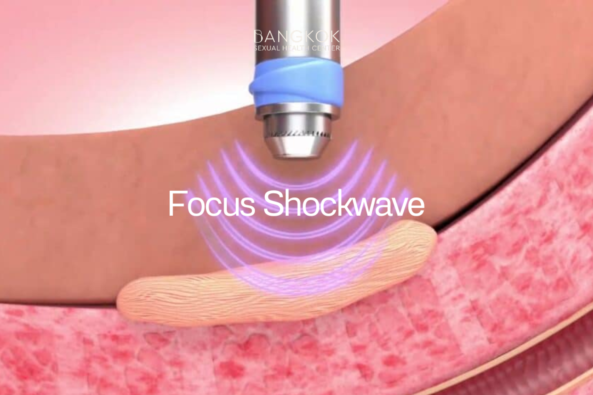 Focus shockwave เป็นการรักษา ภาวะหย่อนสมรรถภาพเพศชาย ที่มีปัญหาการแข็งตัวขององคชาต หรือ ที่เรียกว่า Erectile Dysfunction หรือ ED ด้วย Focus shockwave ซึ่งเป็นคลื่นเหนือเสียงที่มีคุณสมบัติพิเศษ แตกต่างจากคลื่นเสียงแบบอื่นๆ เมื่อทำการรักษาลงไปที่ลำองคชาติบริเวณเนื้อเยื่อคล้ายฟองน้ำที่มีเส้นเลือดอยู่ในนั้น จะไปกระตุ้นให้เกิดการซ่อมแซม ฟื้นฟูเนื้อเยื่อ เส้นเลือด เส้นประสาท ที่เดิมอาจเสื่อมสภาพ ขยายตัวได้ไม่ดี หรือตีบตัน เกิดการสร้างเส้นเลือดขึ้นมาใหม่ทดแทน จึงมีเลือดไหลเข้ามาในองคชาตได้มากขึ้น เส้นประสาทไวต่อการกระตุ้นมากขึ้น การแข็งตัวเวลามีเพศสัมพันธ์จึงดีขึ้น